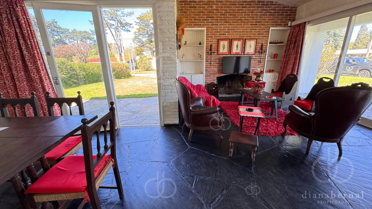 Son 3 dormitorios, 2 baños (1 en suite), cocina comedor, living-comedor con estufa a leña y cochera techada.
